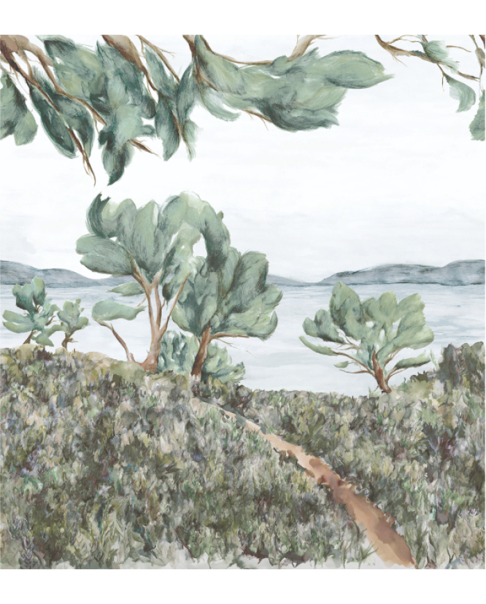 Εμπνευσμένη από ένα ταξίδι στην περιοχή Cap Frehel, το τοπίο έχει μεταφερθεί στην ταπετσαρία με τη χρήση χρωματιστών μελανιών, με μια παλέτα εξαιρετικών αποχρώσεων.