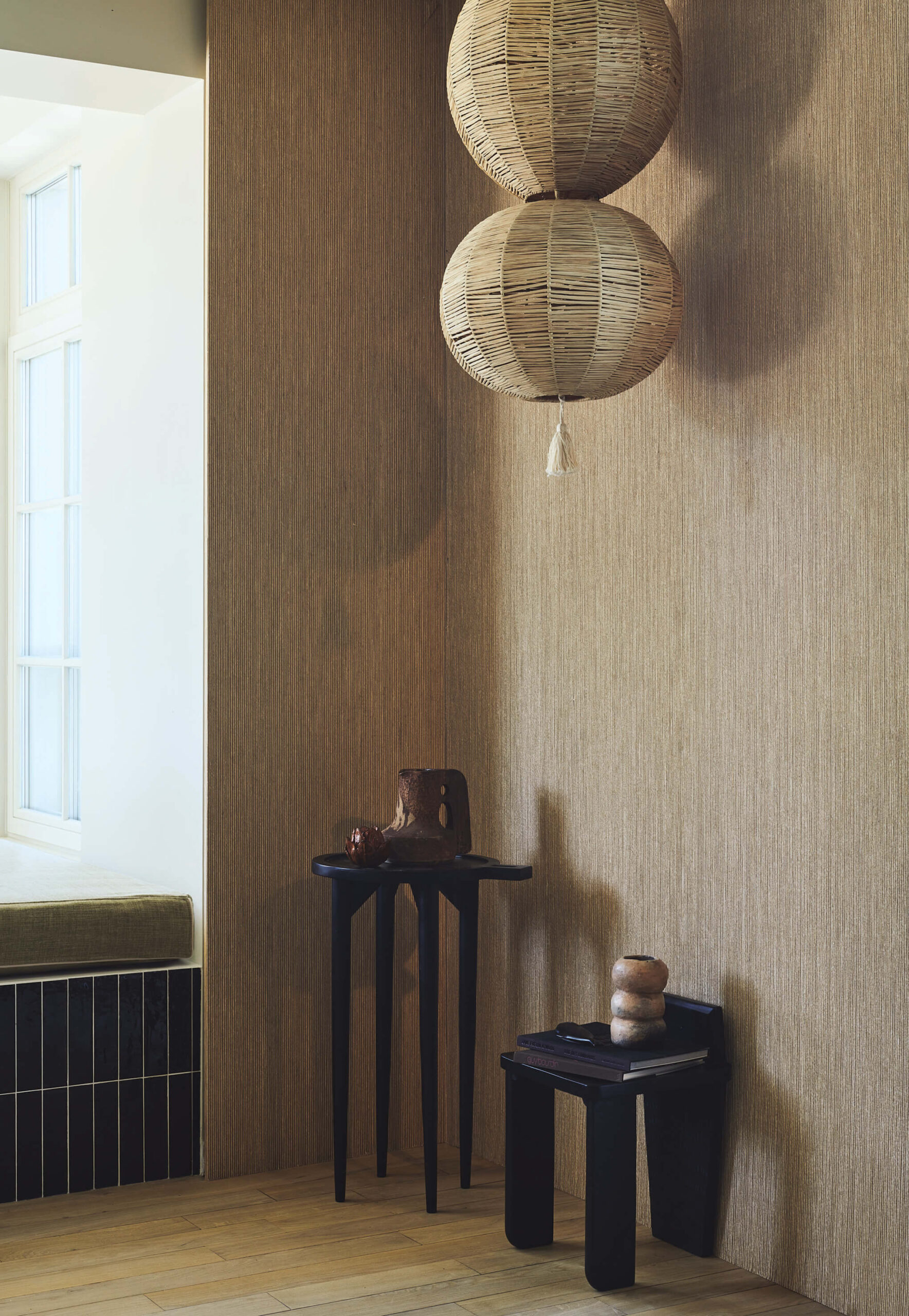 Ένα σχέδιο εμπνευσμένο από τους κοραλλιογενείς υφάλους, που συμβολίζει τους δεσμούς που σφίγγουν και ένα σπίτι γεμάτο φύση. Δεν απαιτείται ύφανση για αυτό το σχέδιο ρίγας. Εναλλασσόμενες κλωστές από λινάρι και χαρτί κολλιούνται στη non-woven βάση, δημιουργώντας μια χαλαρωτική, γραμμική αισθητική.