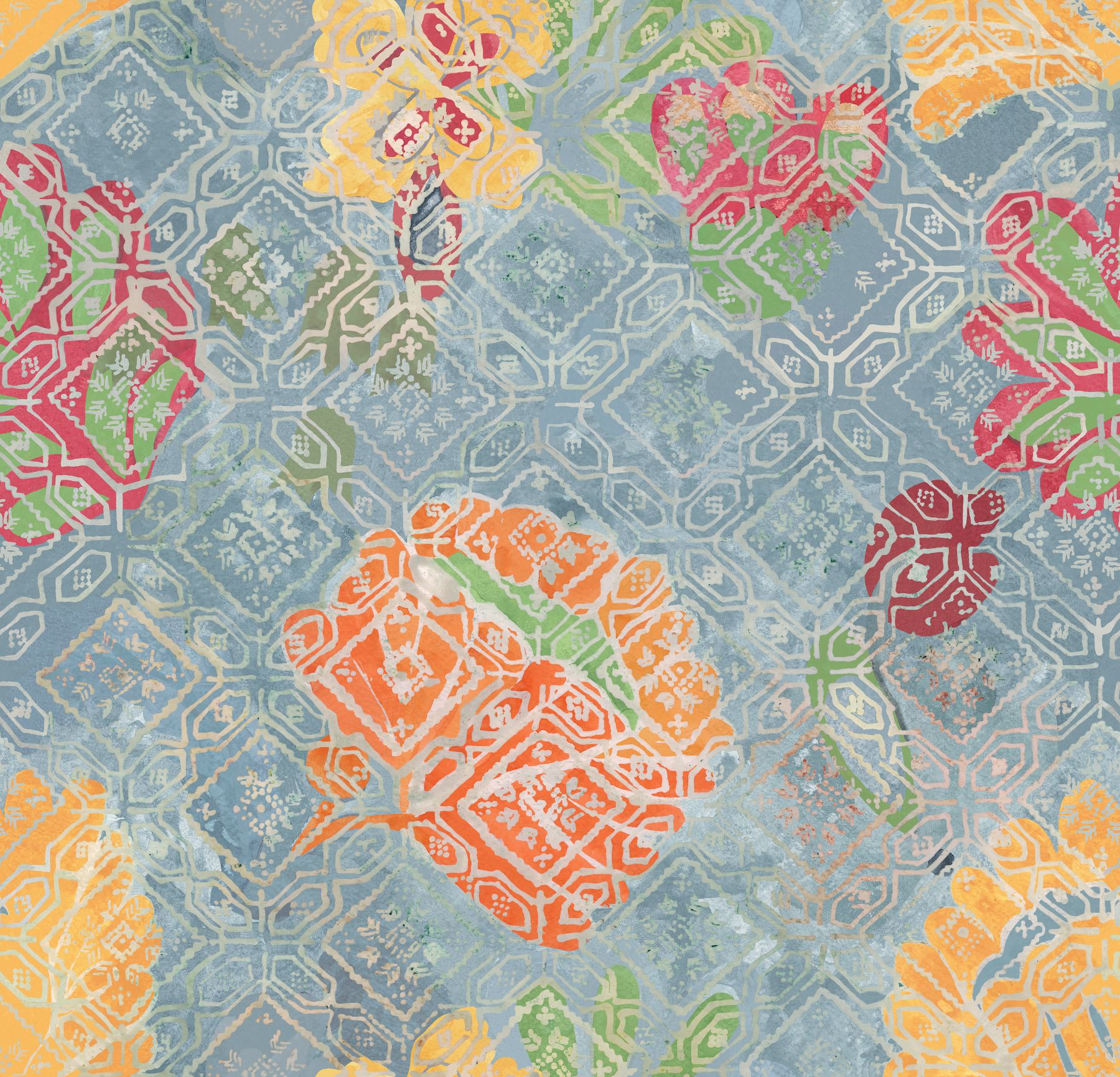 Η ταπετσαρία Shepherd’s Delight διαθέτει έντονα floral μοτίβα σε απαλό μπλε φόντο. Εμπνευσμένη από τα ανθισμένα λιβάδια της Τρανσυλβανίας, το εμπνευσμένο από το μπατίκ σχέδιο παρουσιάζει τολμηρά, νεροχρωματισμένα άνθη.